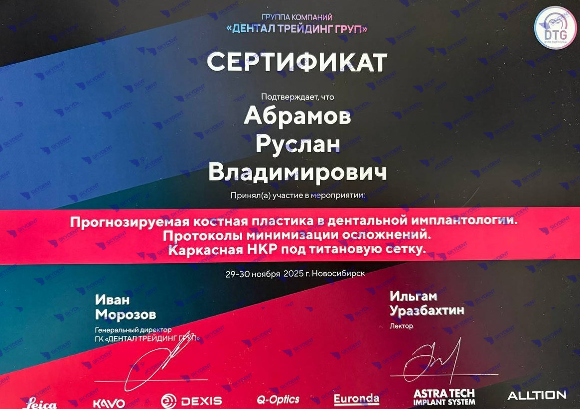 2025г. - "прогнозируемая костная пластика в дентальной имплантологии . Протоколы минимизации осложнений. Каркасная НКР под титановую сетку."