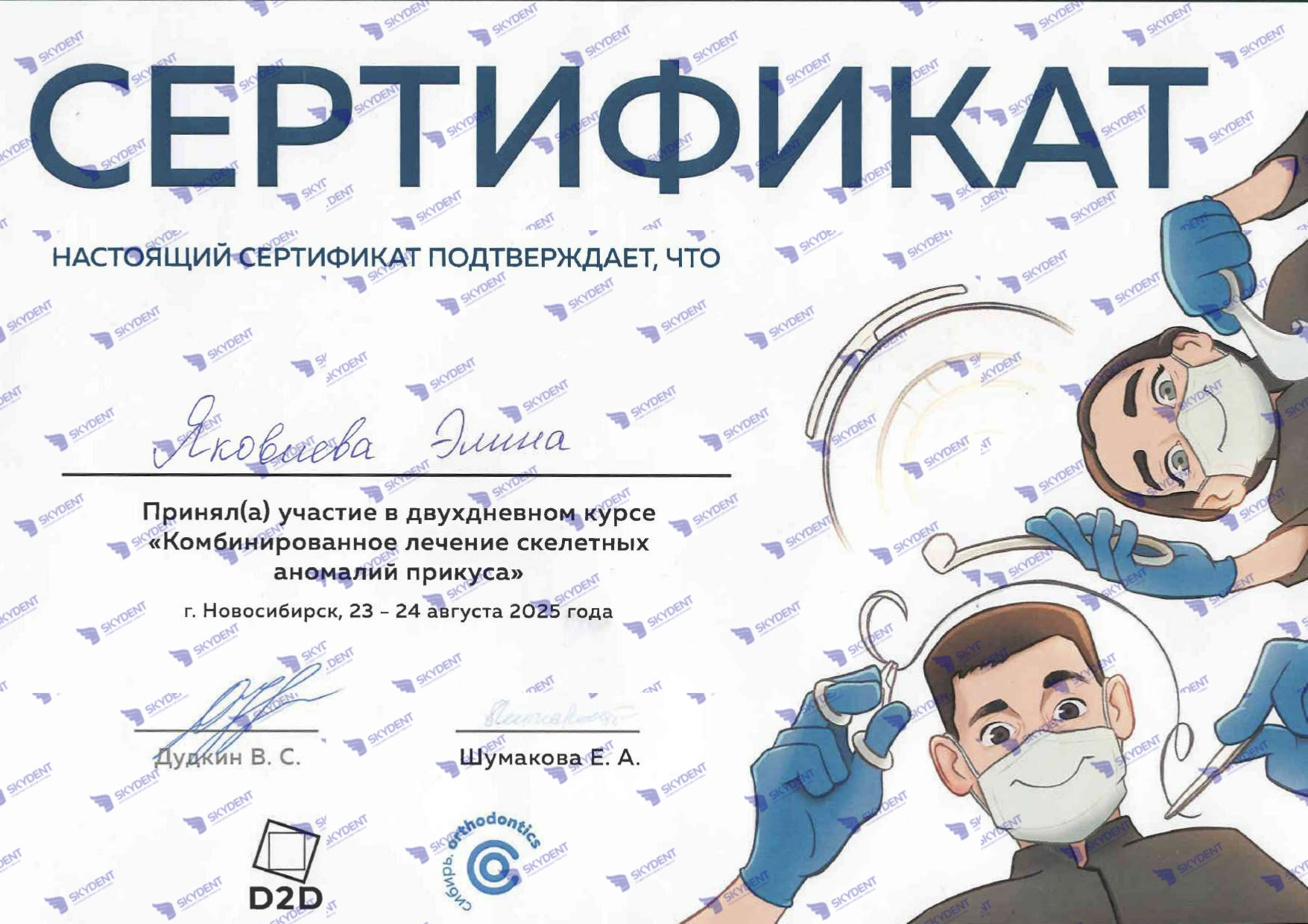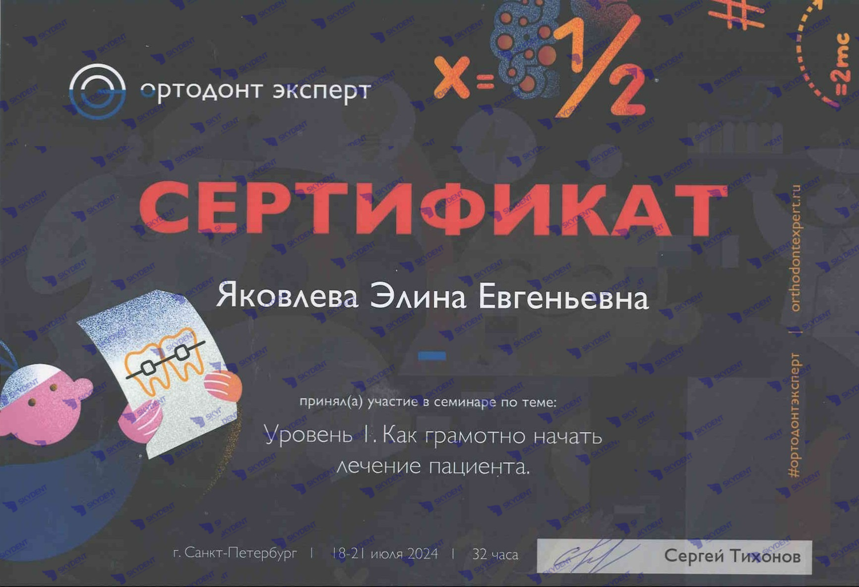 2025 г- участник семинара для врачей-ортодонтов по теме: «Дефицит места. Сохранять или удалять. Алгоритм принятия решения.». Лектор: Юрий Кулаев