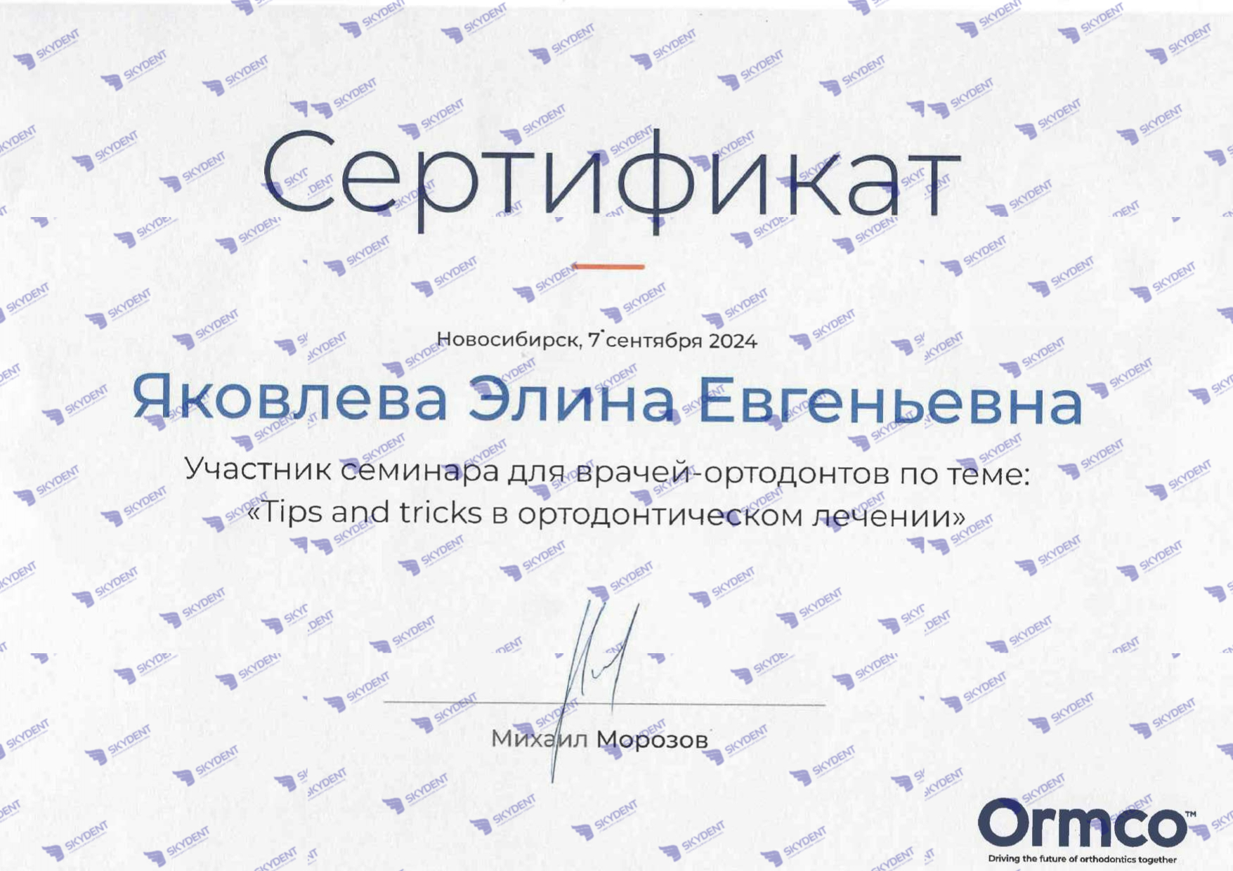 2024 г- участник семинара для врачей-ортодонтов по теме: «Tips and tricks в ортодонтическом лечении». Лектор: Михаил Морозов