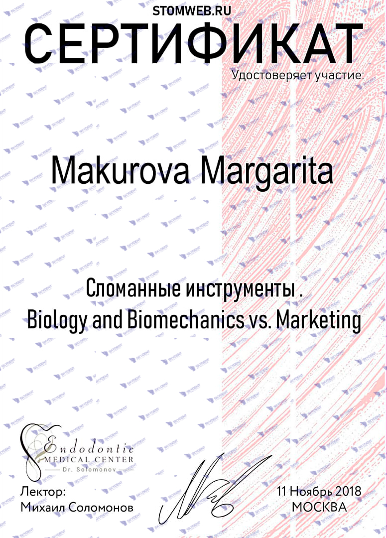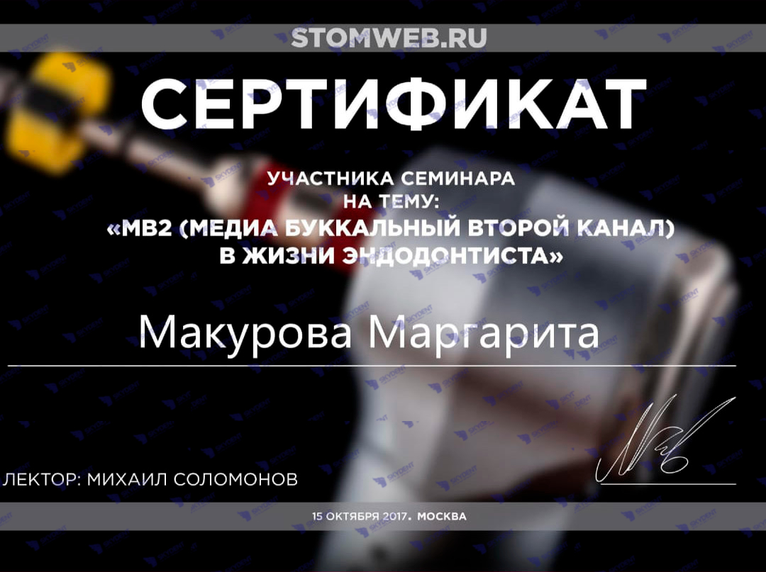 2017 г. – Учебный курс: «Экстрим в эндодонтии или С -образные корневые каналы» Михаил Соломонов