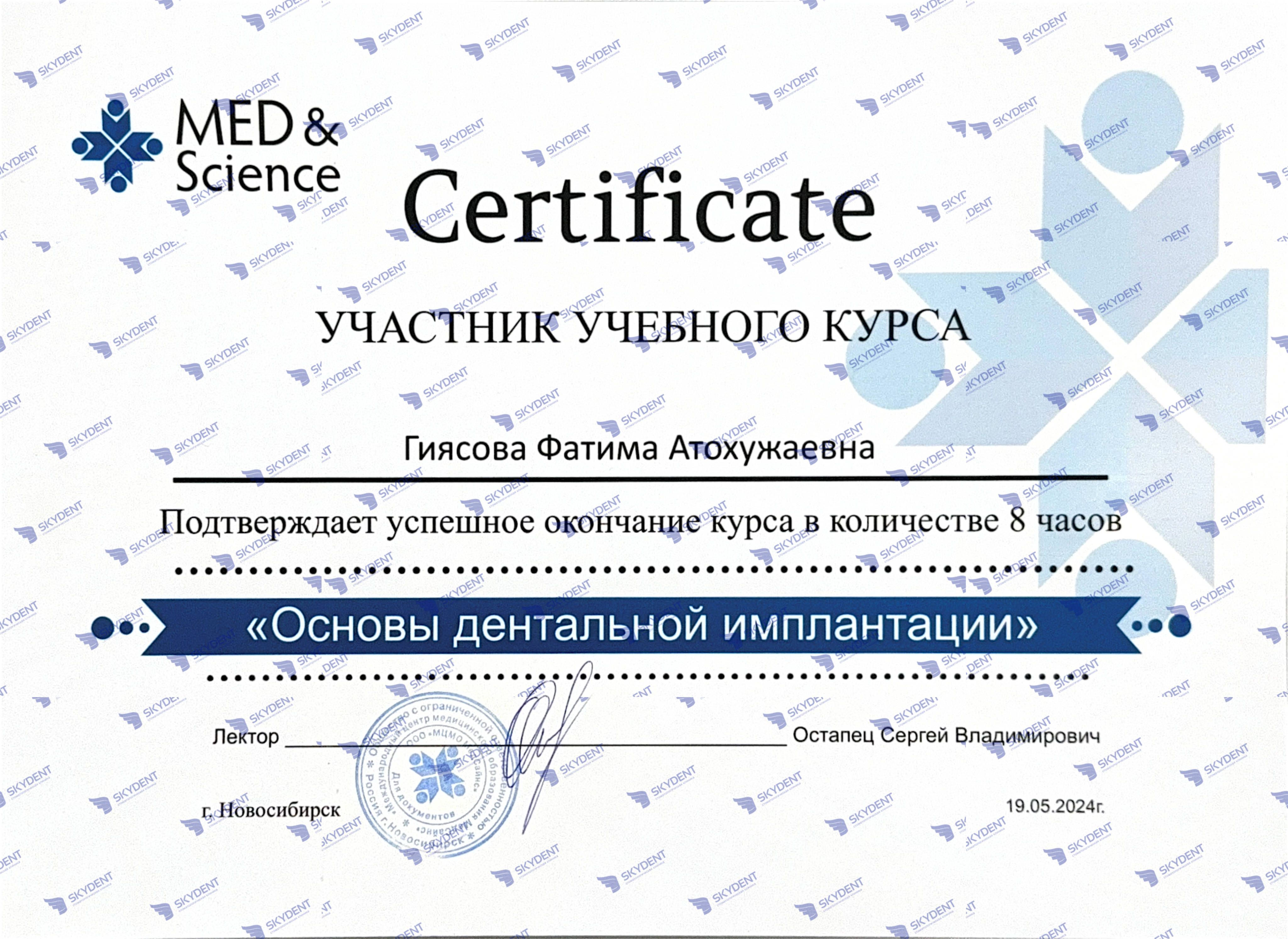 2024 г.- Курс "Основы дентальной имплантации" Лектор: Остапец Сергей. г. Новосибирск.
