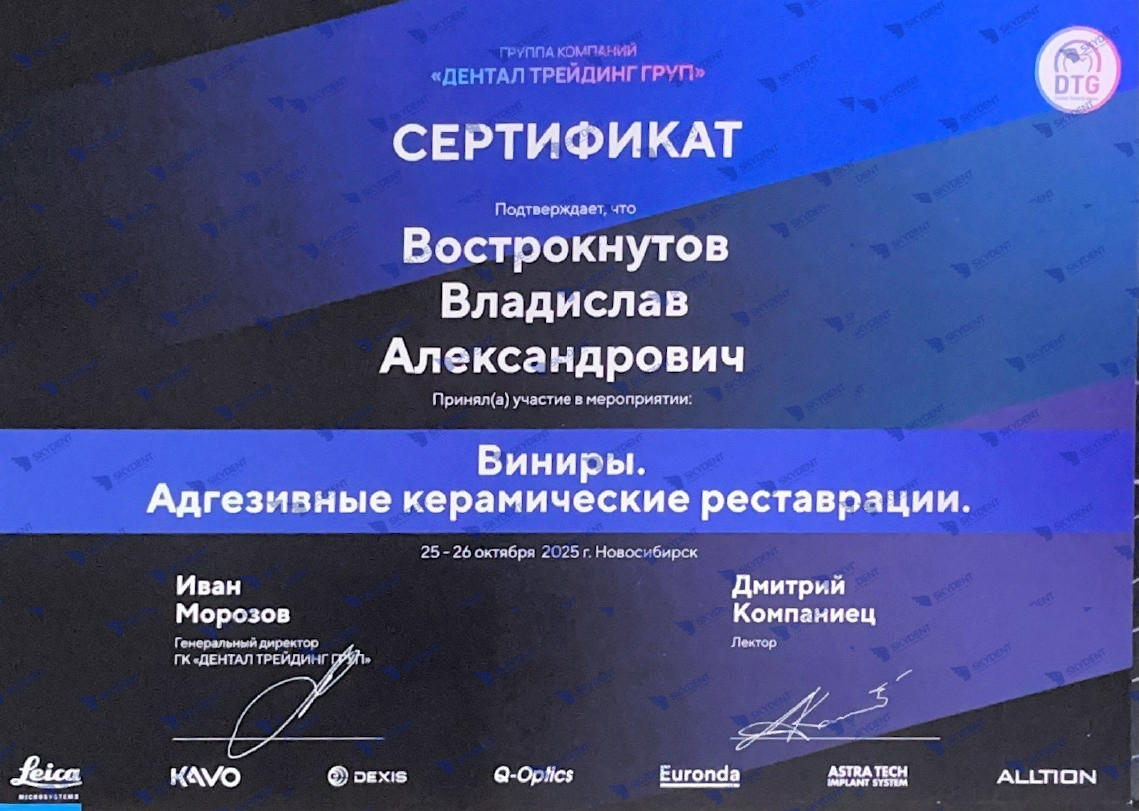 2025 - Лекционно-практический курс «Виниры. Адгезивные керамические реставрации » Спикер Компаниец Дмитрий